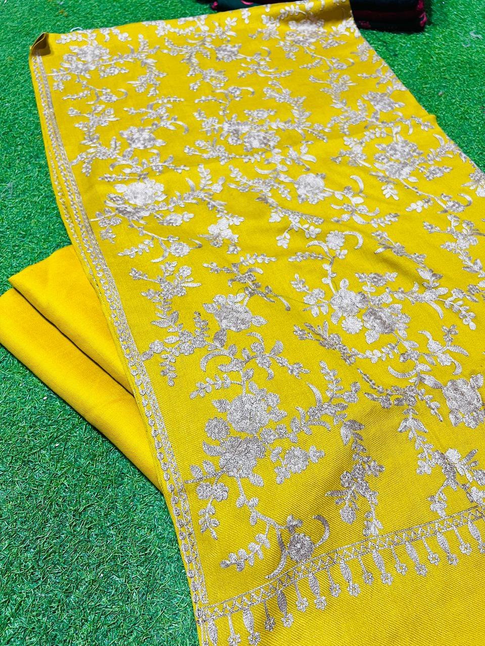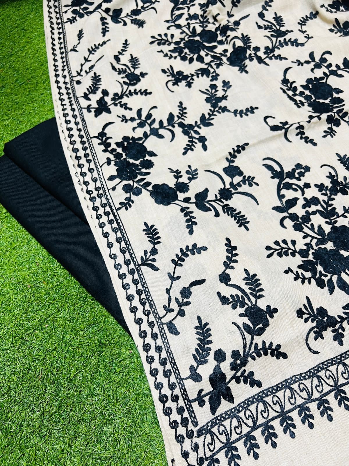 Floral Embroidery Pashmina 3pcs suits. Full sizeEmbroidered shawl Plain Pashmina suit Good Quality Fabric. 3pcs suits Separate shawl